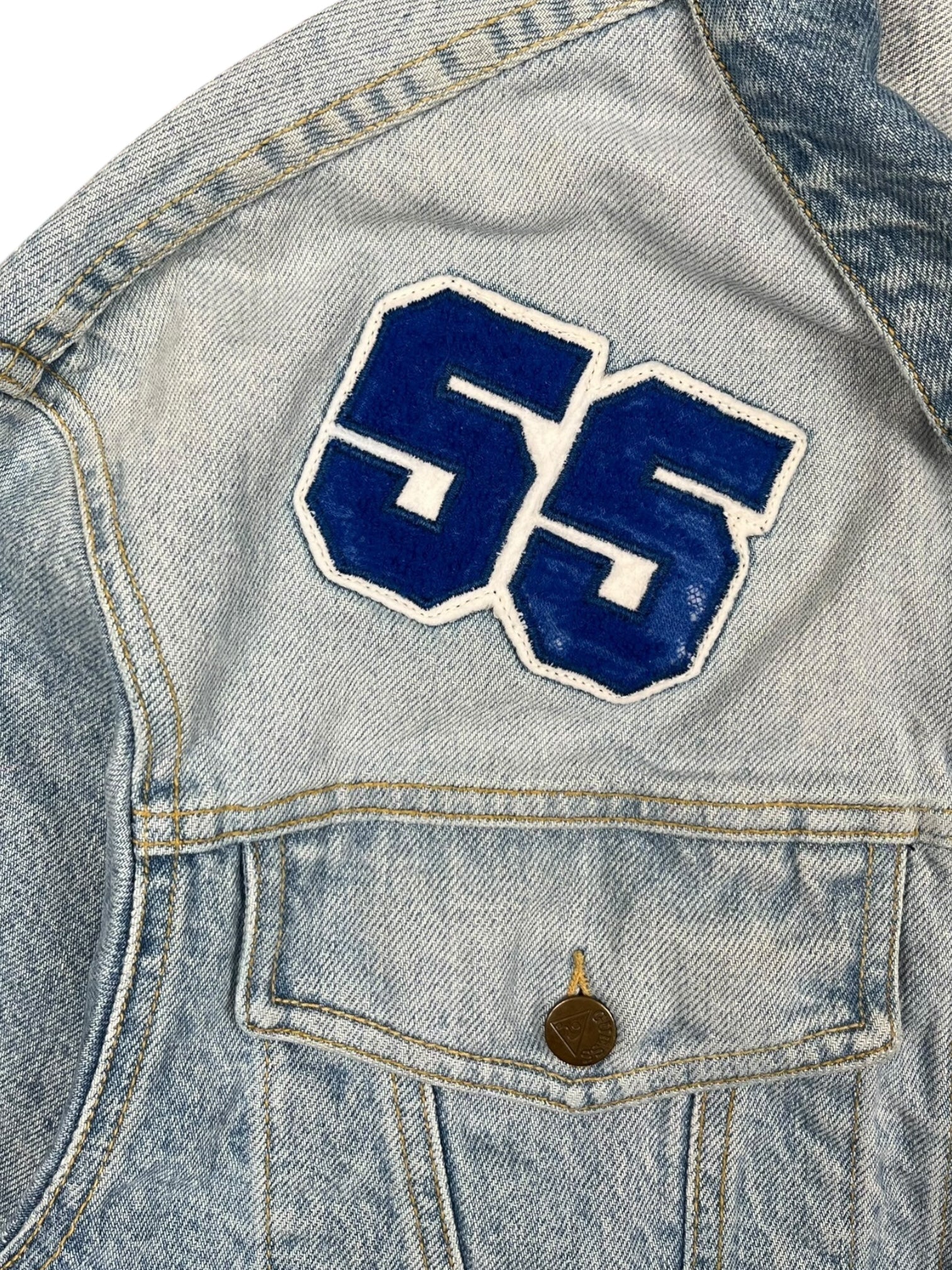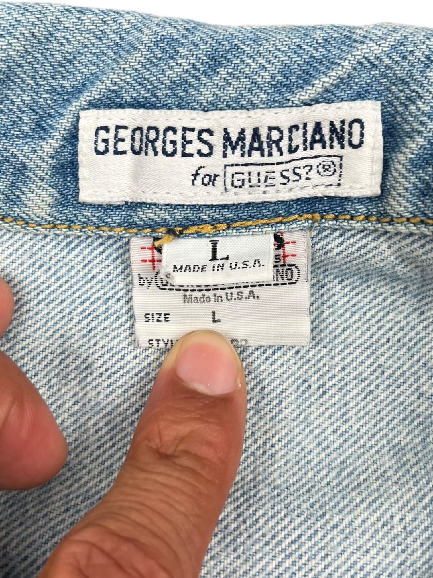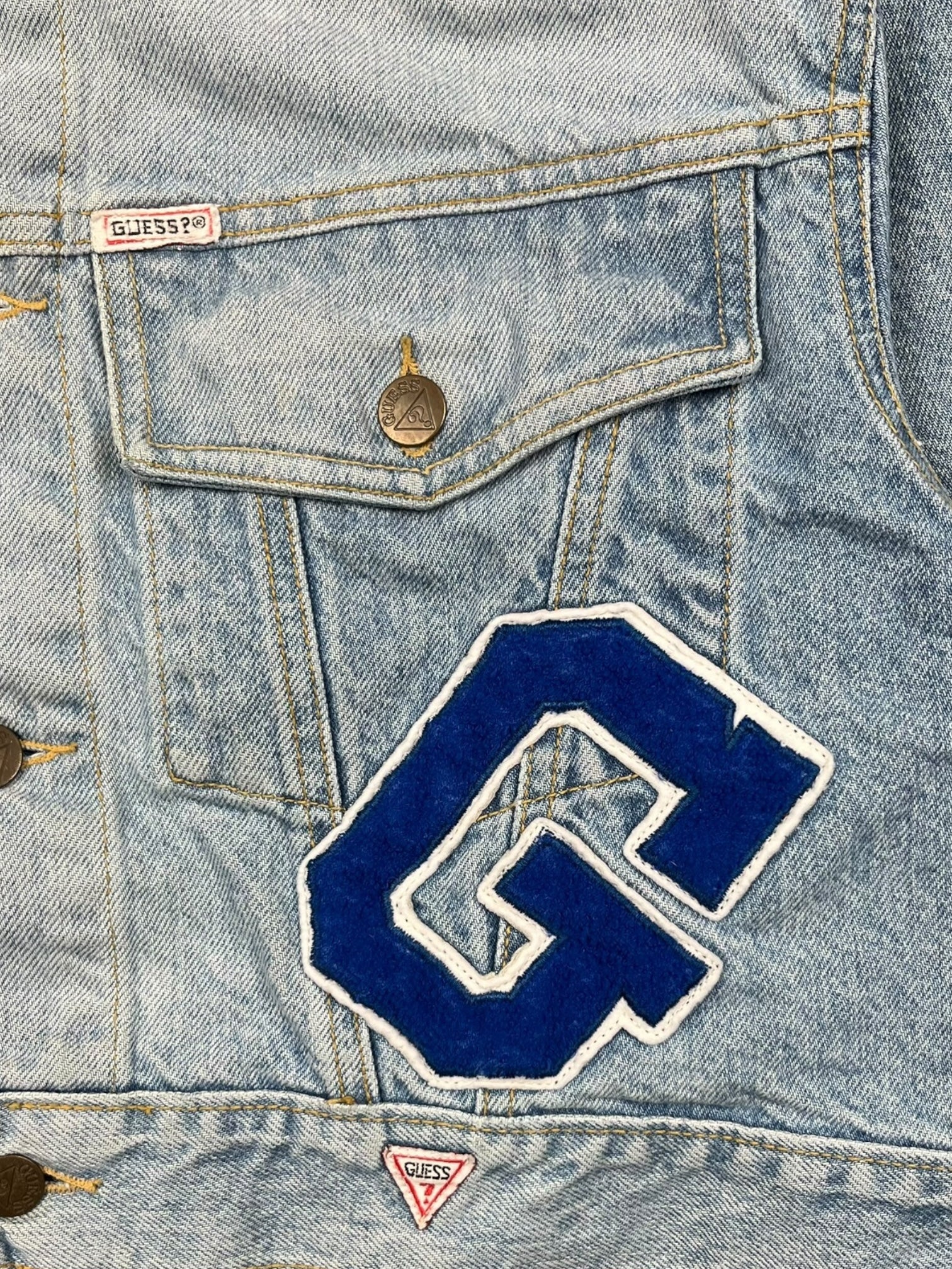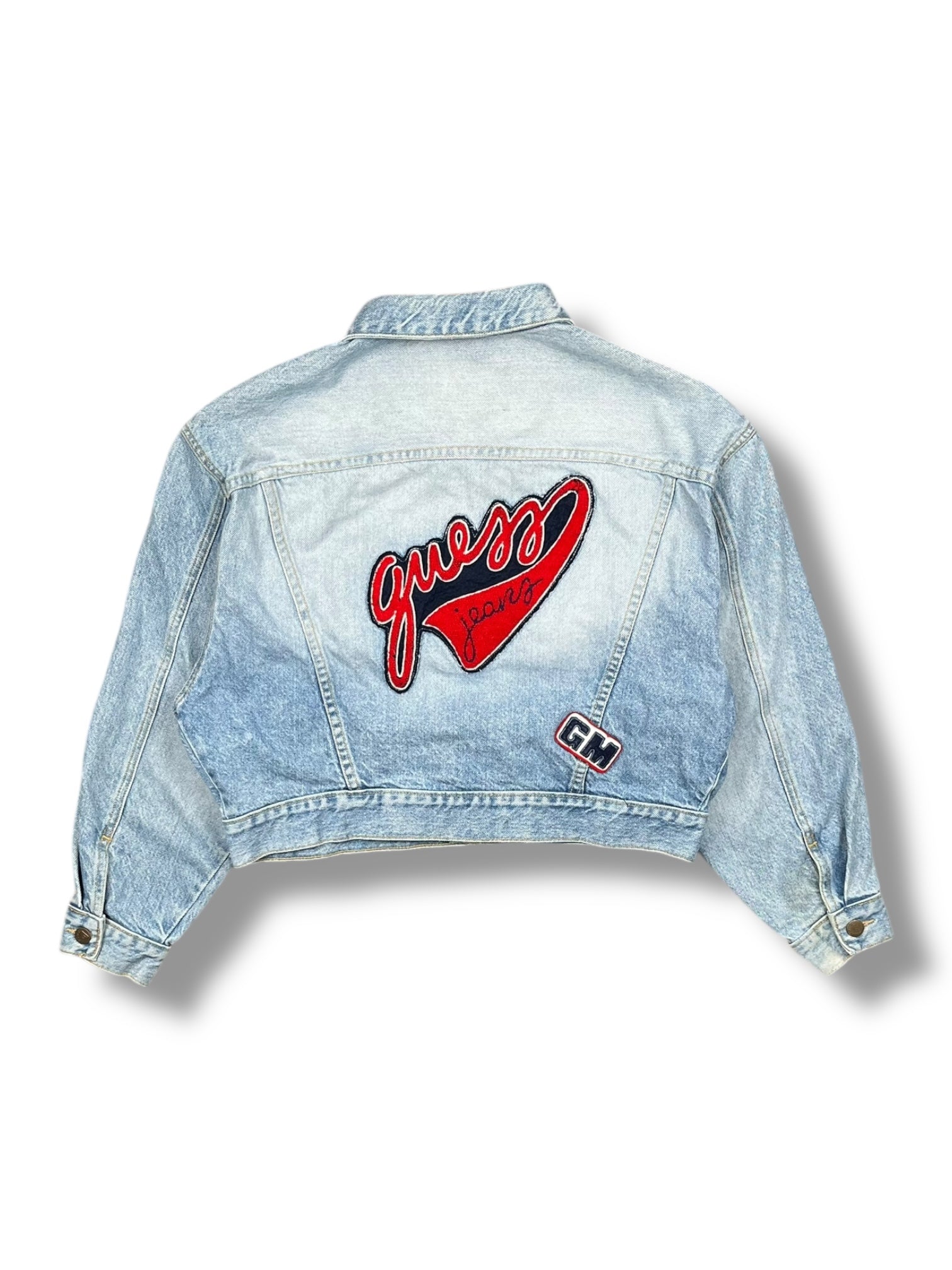 1980's "Guess" Cropped Denim Jacket w/ Patches (L)